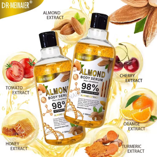 Dr. Meinaier Almond Body Serum is a deeply nourishing formula enriched with sweet almond extract to hydrate, soften, and revitalize your skin. Packed with vitamins and natural oils, it helps restore moisture, improve elasticity, and leave your skin silky-smooth to the touch. Its lightweight, fast-absorbing texture provides intense hydration without greasiness, making it perfect for daily use. With regular application, Dr. Meinaier Almond Body Serum promotes a healthy, radiant glow and long-lasting softness for beautifully cared-for skin.
