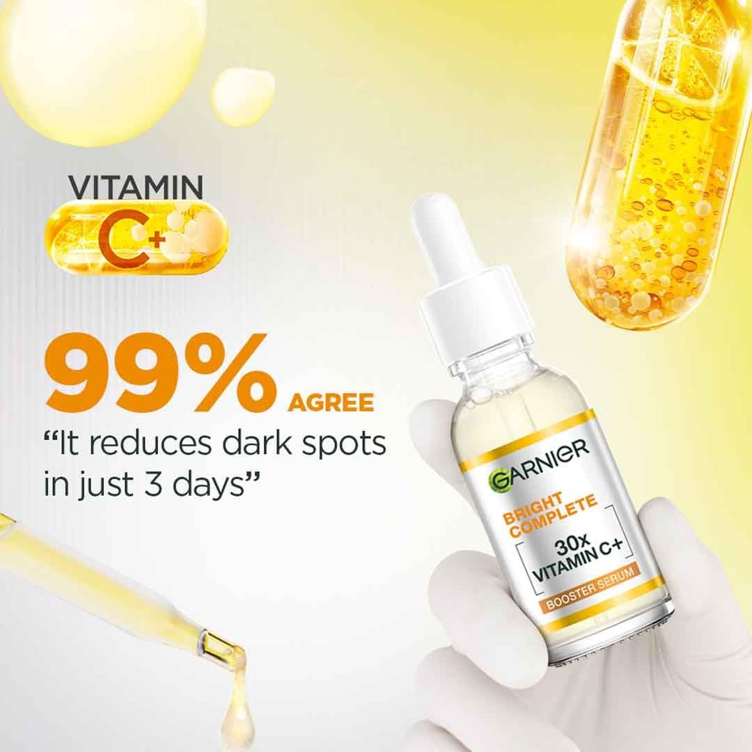 Garnier’s Bright Complete Vitamin C Booster Serum brightens skin, fades dark spots, and evens skin tone due to its high concentration of Vitamin C. It offers faster results than regular Vitamin C products, improving overall skin clarity, radiance, and texture. The lightweight formula absorbs quickly, nourishing the skin without clogging pores and can also help defend against pigment.