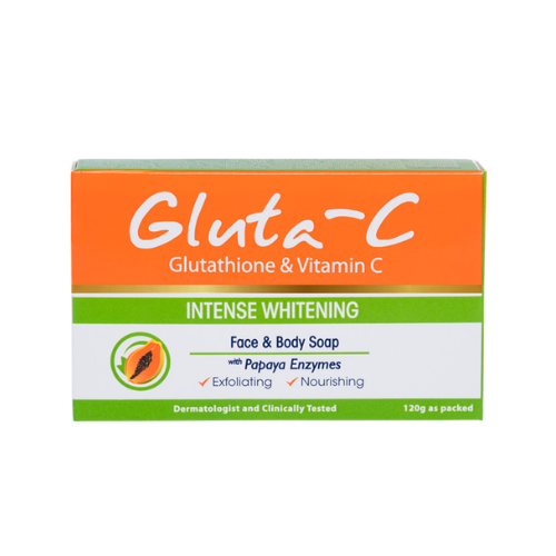 Achieve visibly fairer, radiant, and smoother skin with Gluta-C Intense Whitening with Papaya Enzymes Soap. Expertly formulated with a powerful blend of Glutathione, Vitamin C, and Papaya Enzymes, this whitening soap helps brighten skin tone, fade dark spots, and smoothen rough areas for an even, youthful glow.