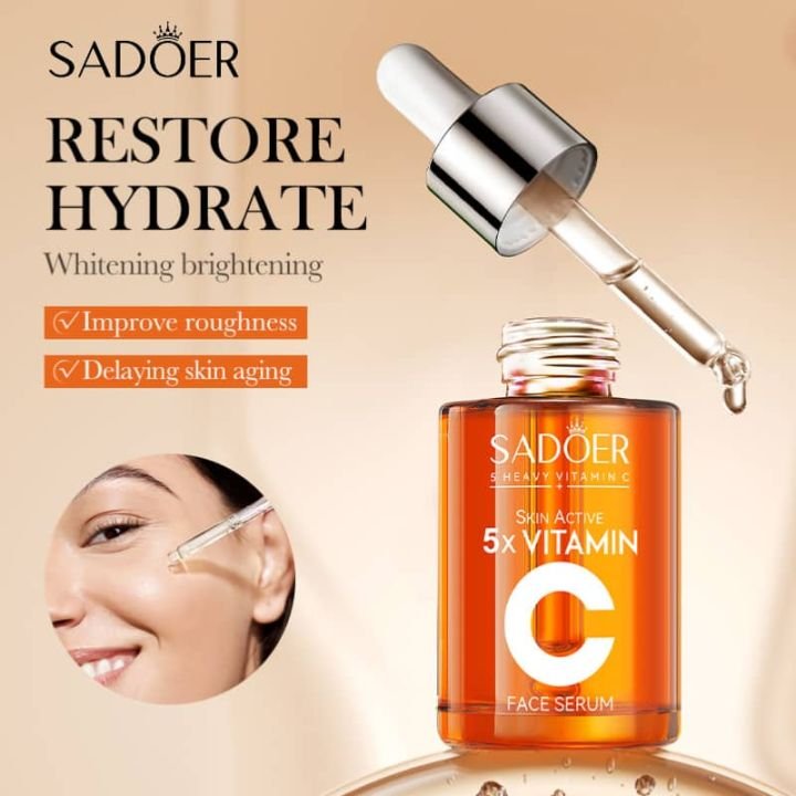 The SADOER 5 Heavy Vitamins C Skin Active products aim to brighten and even out skin tone by reducing dark spots and discoloration. They also provide antioxidant protection, nourish and repair the skin, and improve overall texture for a smoother, more radiant, and youthful complexion. The formula helps the skin retain moisture and can be effective in repairing sun and pollution damage.