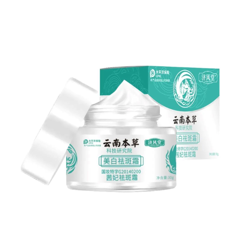 Yunnan Herbal Whitening and Freckle Removing Cream is a traditional herbal skincare formula crafted to brighten the complexion and reduce the appearance of freckles, dark spots, and pigmentation. Infused with natural Yunnan herbs and botanical extracts, it works gently yet effectively to even out skin tone, fade blemishes, and reveal a clearer, more radiant complexion. Its nourishing formula also hydrates and smooths the skin, leaving it soft, luminous, and refreshed. Perfect for daily use, Yunnan Herbal Whitening and Freckle Removing Cream helps you achieve naturally glowing, flawless-looking skin.